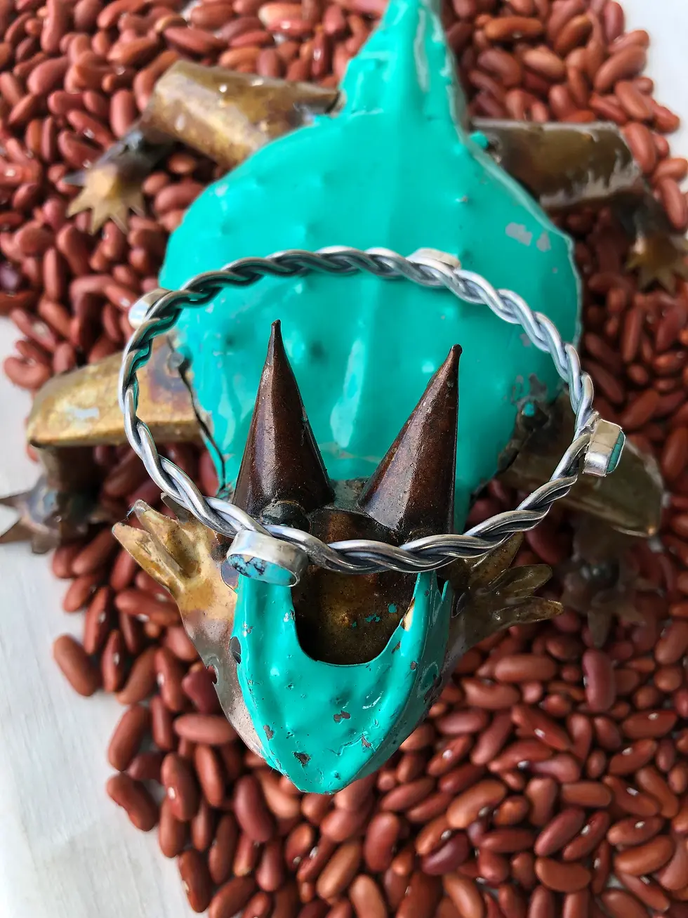 Turquoise & Feather Cuff Bracelet